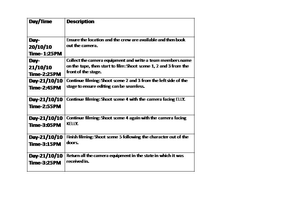 After looking at the whole editing version of the video, i thought that it was very good as i thought it would of been much harder however during one of the scenes where ELLY and KELLY were talking to each other, the shot reverse shot was quite poor as we could not see ELLY's face when she was talking to KELLY, so we could of done more shots on that specific scene. Overall I was very pleased with the continutiy in the video as there was no errors however we did have a few problems as we didn't stick to the Shot List and just done the editing as we were going along and therefore we did have some shots missing which could if made it more better.